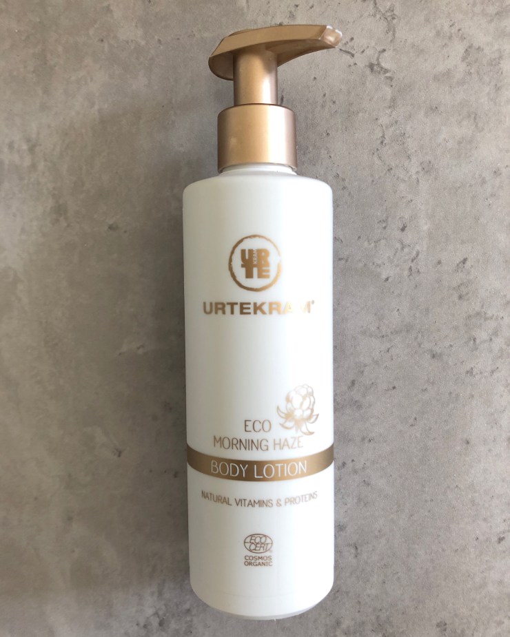 Det här apoteket sålde tillfälligt kroppslotion och duschkräm och jag haffade båda. Hudprodukterna i den här serien funkar mycket bra. Lotionen är väldigt fuktgivande och torkar in relativt fort (om inte skulle jag inte använda den), och efter att ha duschat med duschkrämen känns min hud mjuk och len och inte alls torr och fnasig eller stram, som den kan kännas av alltför uttorkande produkter. Hur schampo och balsam är kan jag inte svara på, men utifrån mina tonårserfarenheter skulle jag gissa att schampot (i ”rätt” sort och doft) säkert funkar bra bara man använder ett utredande balsam efteråt som funkar med ens hår. Det känns ju bra om i alla fall 50 % av proceduren, i det här fallet hårtvätten, blir vegansk. Balsamet anar jag, av observera gammal erfarenhet att det kanske inte är helt lyckat på ett längre hår som ibland blir torrt utan mjukgörande produkter. På en kortklippt frisyr funkar det säkert superbra med Urtekrams balsam. Naturligt snygg-bloggen som jag hamnat på ibland när jag sökt efter samvetsrena produkter har testat och recenserat Morning Haze här: https://www.naturligtsnygg.se/hannah/schampo-och-balsam-fran-urtekram-morning-haze/